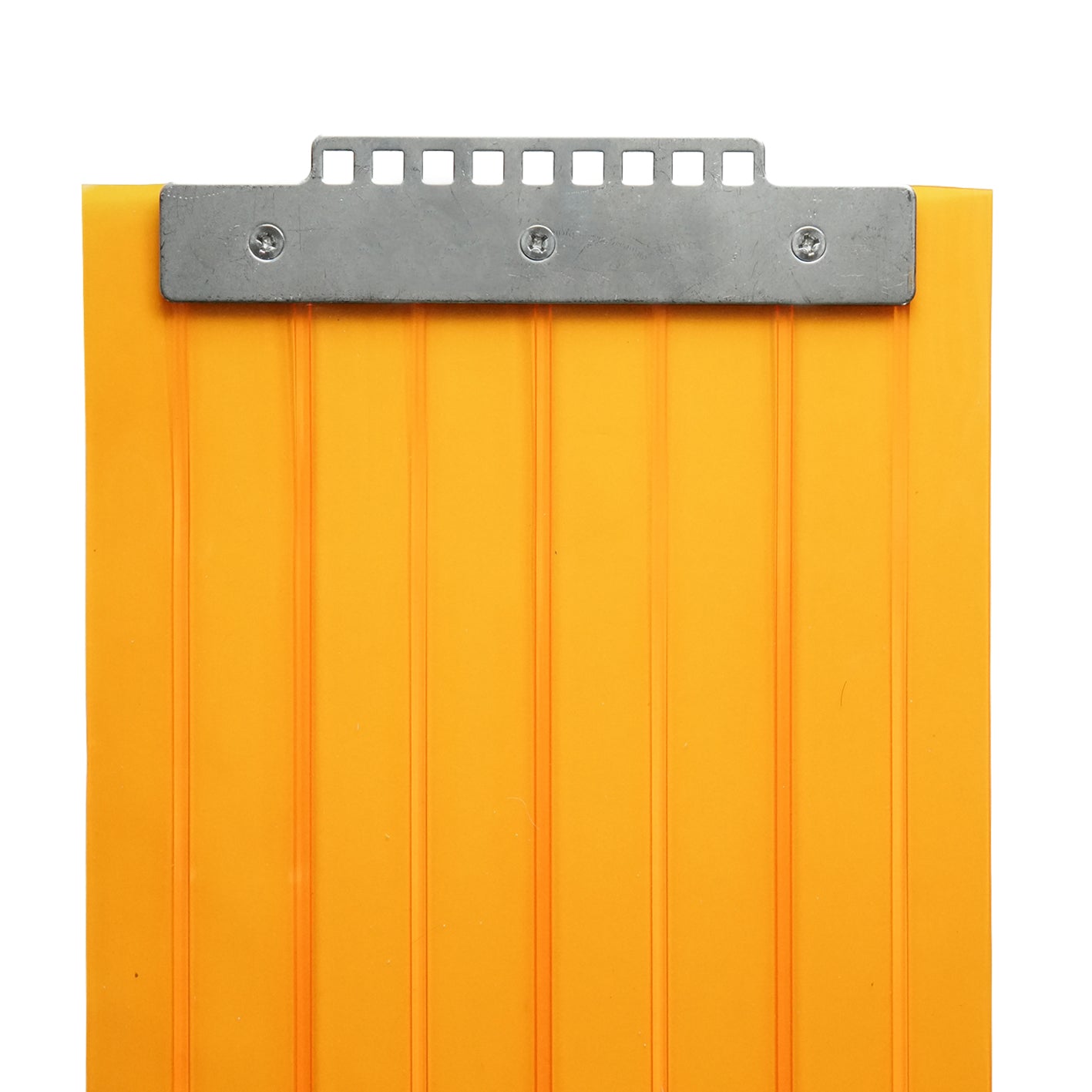 【コレクション無し】のれんビニール リブ付静電防虫オレンジ t2mm 300mm幅 mカット Aタイプ固定式ハンガー付き