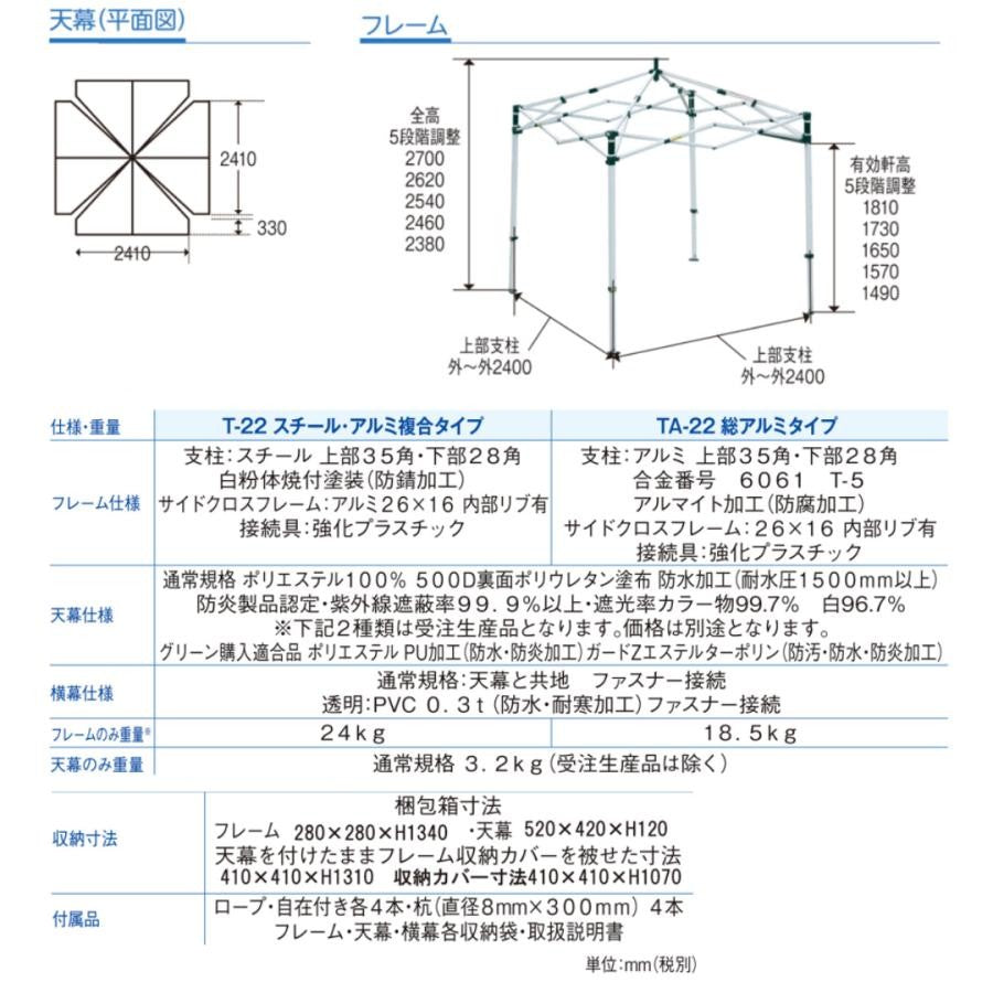 最高クラスの強度と耐久性。プロが選ぶ「ミスタークイック」耐水圧1,500mm・UVカット率99.9%・高強度フレームのSGマークを取得した最強ワンタッチテント(1) 圧倒的な「強度」と「耐久性」を実現したフレーム構造一般的な簡易テントの支柱(25mm~30mm前後)に対し、ミスタークイック(T・TAシリーズ)は**「35mm角」の極太支柱**を採用。断面積を大きく取ることで、物理的な曲げ強度を飛躍的に高めています。一般的な他社製品と比較して、支柱やクロスフレームを太く設計。さらにフレーム内部に**「補強リブ(内側の壁)」を入れることで、軽量さを保ちながらも、ねじれや衝撃に対する最高レベルの強度を実現しました。「すぐに壊れる」「風に弱い」というワンタッチテントの常識を覆す、長く安心して使える高耐久モデル**です。【インナーリブ(補強壁)構造について】フレームの空洞内部に**「補強用のリブ(柱)」を追加。これにより、単純なパイプ構造に比べて約1.5倍~2倍の「座屈強度(折れにくさ)」**を確保。長期間の使用でもフレームの歪みをミクロン単位で抑制します。(2)安全の証「SGマーク」取得済み(製品安全協会認定)イベントや学校行事、防災用として多くの導入実績を誇る理由は、確かな安全性にあります。ミスタークイックは、厳しい安全基準をクリアした製品のみに与えられる**「SGマーク(Safe Goods)」を取得。万が一の製品欠陥による事故に対応する賠償措置も講じられており、企業様や自治体様、教育機関様にも「最も信頼できるテント」**として選ばれています。日本のクイックテントの中では唯一取得しております。(3)過酷な環境に耐える「高機能天幕」天幕には、プロユースに耐えうる最高スペックの生地を採用しています。耐水圧1,500mm以上:一般的な傘(約250~500mm)を遥かに超える防水性能で、急な豪雨からも内部をしっかり守ります。【UVカット率99.9%】有害な紫外線をほぼ完全に遮断。熱中症対策用テントとしても優れた効果を発揮します。【防炎製品認定】火気を扱うイベントや、万が一の災害時にも安全な防炎加工が施されています。(4)わずか60秒のスピード設営部品が一体化した「一体式構造」のため、パーツの紛失の心配がなく、大人2名でわずか60秒での設営・撤収が可能。手間のかかる組み立て作業をゼロにし、**「最高強度」と「手軽さ」**を両立させた、まさに理想的なクイックテントです。商品名:ミスタークイック TA-22 総アルミタイプ 製造元:有限会社埼玉通商間口:2.4m奥行:2.4m軒高:1490~1810mm全高:2380~2700mm重量:18.5kg<フレーム仕様>支柱スチール 上部35角・下部28角 白粉体焼き付け塗装(防錆加工)サイドクロスフレーム:アルミ26×16 内部リブ有接続具:強化プラスチック<天幕使用>通常規格 ポリエステル100% 500D裏面ポリウレタン塗布 防水加工(耐水圧1500mm以上)防炎認定製品・紫外線遮蔽率99.9%以上・SGマーク取得 製品安全協会 認証品・防炎認定製品 F-29238 N-1391<オールアルミ製品との比較>価格:総アルミタイプ(定価100,000円) > スチール・アルミ複合タイプ (定価93,000円) 強度:総アルミタイプ ≒ スチール・アルミ複合タイプ 重量:スチールアルミ複合タイプ(24kg) > 総アルミタイプ(18.5kg)<沖縄・離島の発送をご希望の方>沖縄・離島の発送については、通常料金での対応ができないため、注文受付後、管理画面にて送料を追加させていただきます。送料が気になる方は、事前にお問い合わせをお願いいたします。また、支払方法についてはクレジットカードのみ対応とさせていただきます。気になる方は気軽にお問合せください。