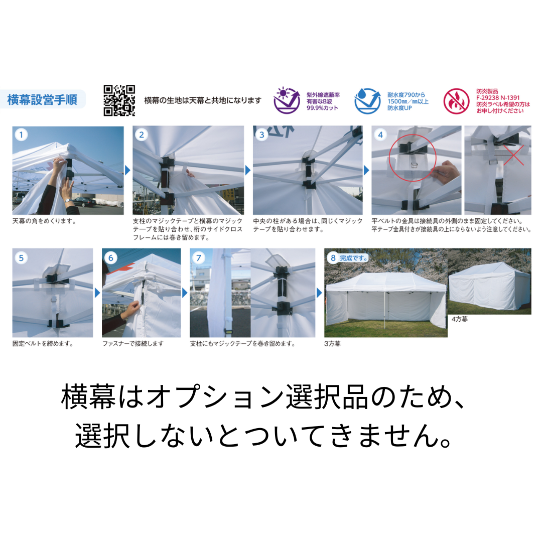 火気を扱うイベントや、万が一の災害時にも安全な防炎加工が施されています。