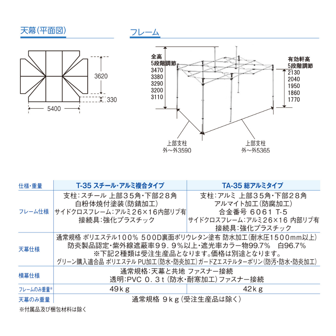 ミスタークイック T-35 3.6m x 5.4m スチール・アルミ複合タイプ